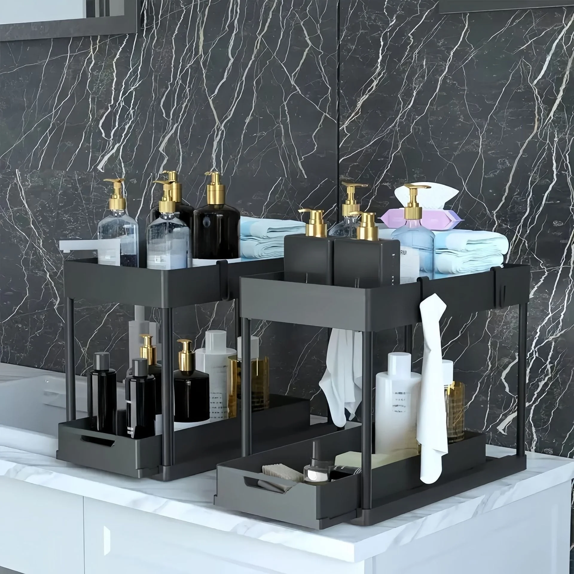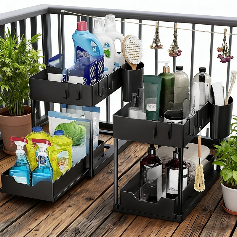 싱크대 아래 슬라이딩 수납 선반 2단 플라스틱 정리대